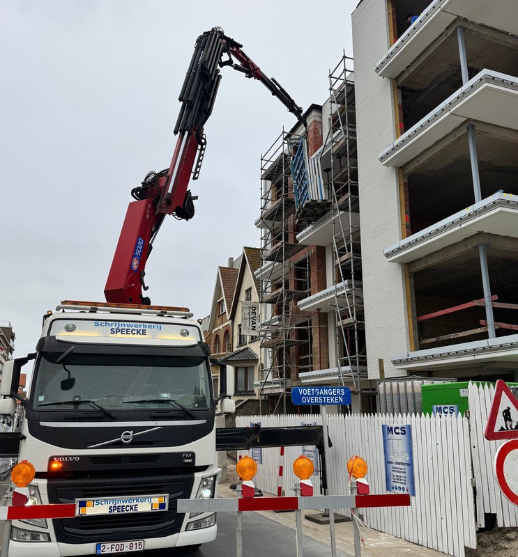 Moeilijk bereikbare ramen of grote glaspartijen plaatsen? Schrijnwerkerij Speecke beschikt over eigen kraanwagens, glaszuigers en de C-haak om elk project veilig en efficiënt uit te voeren.
