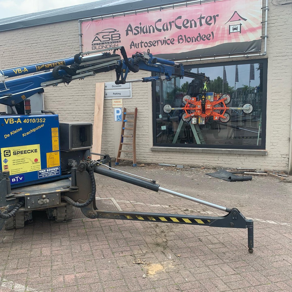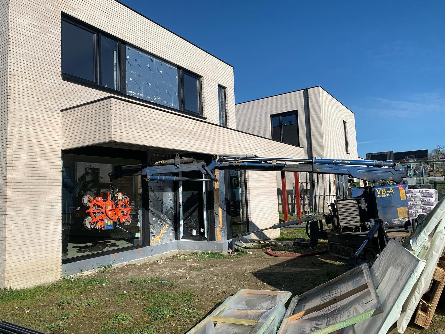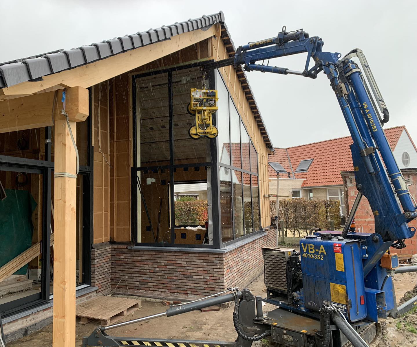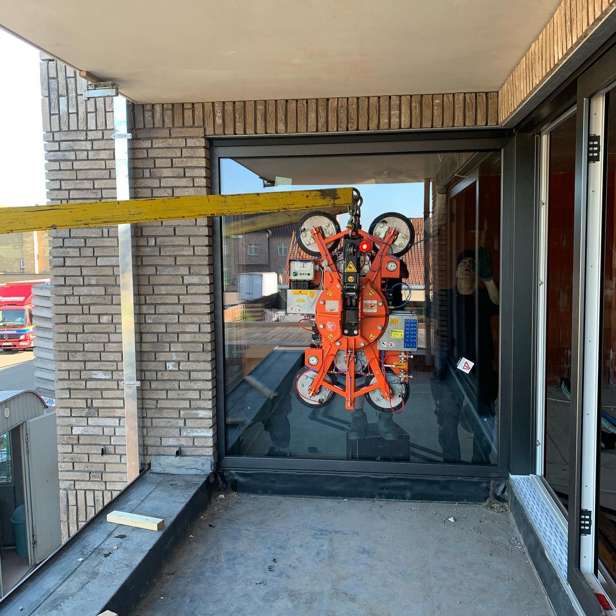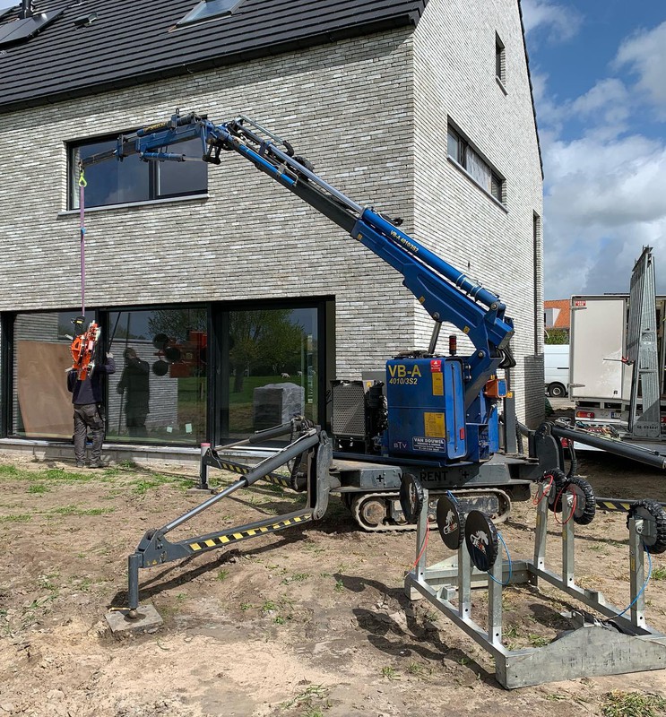 Zelfs grote glaspartijen en moeilijk bereikbare ramen worden veilig en efficiënt geplaatst dankzij onze eigen kraanwagens.
